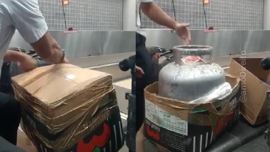 Um vídeo que circula nas redes sociais mostra o momento em que o funcionário da companhia aérea encontra o botijão. Ao retirar o item do pacote, o homem diz para a passageira, que não aparece no vídeo: "Só estou mostrando que isso aqui não pode ser despachado não. Isso é praticamente uma bomba. A senhora derruba um avião com um negócio desse". Ao fundo, é possível ouvir a mulher questionando o funcionário: "Nem vazio?". Ele então afirma que um botjão de gás não pode embarcar nem vazio nem cheio. Veja o vídeo: