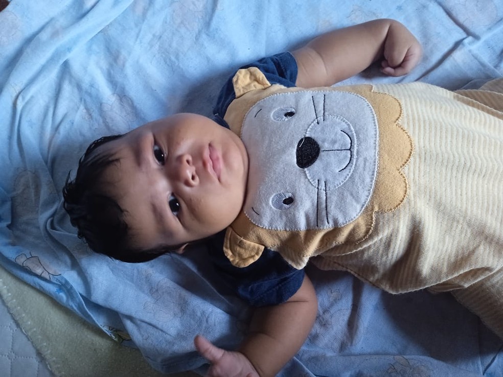 Com quase dois meses desde o nascimento, Alderico já pesa aproximadamente 10 kg, o dobro do peso de uma criança normal para essa idade.