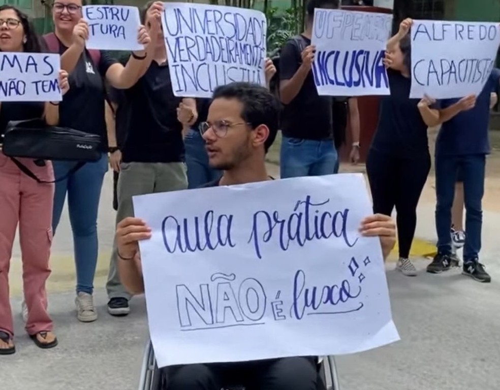 | Heberth Santana participa de ato por acessibilidade no campus da UFPE — Foto: Reprodução/Instagram |