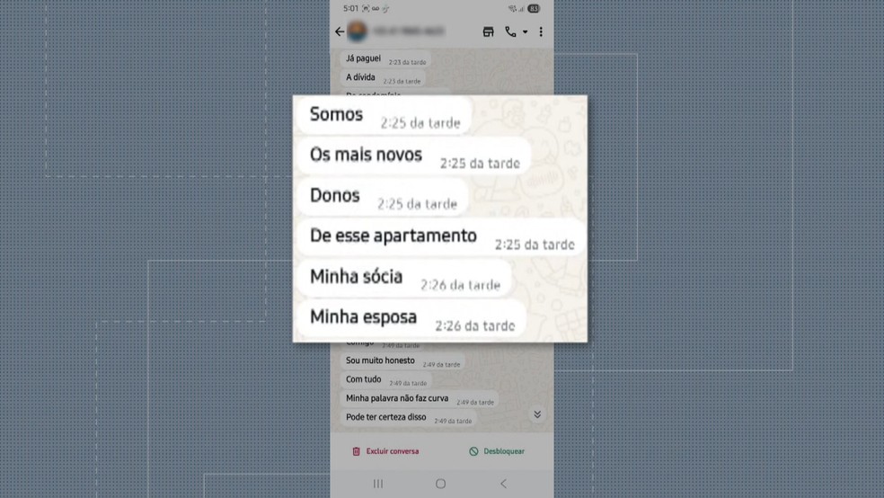 "Até agora não acredito que caí em uma situação dessas, porque eu sempre fui muito cuidadosa nas minhas coisas, sempre tive muito cuidado com essas situações, sabe? Talvez tenha sido um momento de carência, muito tempo sozinha, ele chegou me tratando bem, palavras macias...", afirma a vítima.