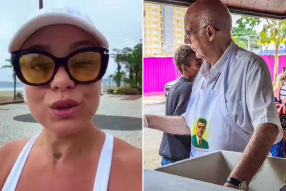 | Padre Júlio Lancellotti entrou com um processo contra a vereadora Janaina Ballaris (União), de Praia Grande (SP) — Foto: Reprodução e Victor Angelo Caldini/Reprodução/Instagram |
