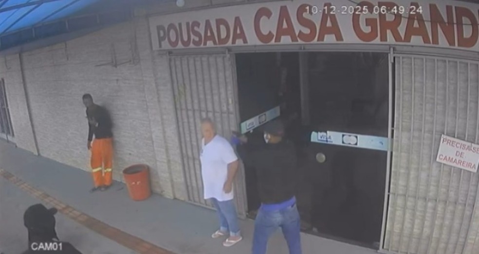 Imagens de câmeras de segurança registraram o momento em que dois homens se aproximam de João em frente a uma pousada. Na gravação, um deles empurra o pedreiro e dispara várias vezes, enquanto o outro o acompanha e dá cobertura. A vítima cai na calçada, e os suspeitos fogem do local logo depois.