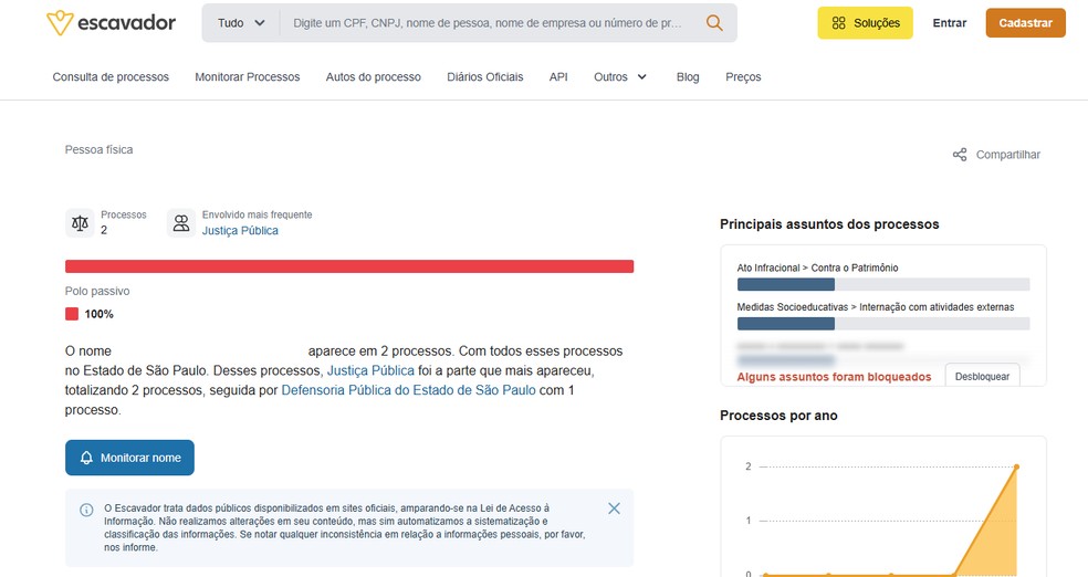"O Jusbrasil organiza e disponibiliza dados públicos extraídos de fontes oficiais do sistema de justiça. Desde a entrada no ar do Jusbrasil, criamos mecanismos de remoção de informações pessoais, mesmo que estejam disponíveis em sites oficiais. Já foram mais de 15 milhões de processos que tiveram informações desidentificadas de forma proativa. Essas medidas incluem casos de adolescentes que cumprem ou cumpriram medidas socioeducativas.