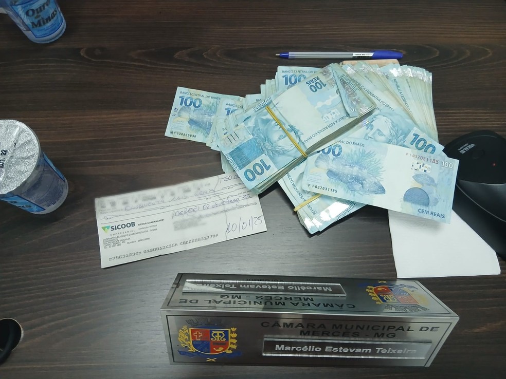 | Dinheiro supostamente recebido por vereador em Mercês foi apreendido pela PM — Foto: Polícia Militar/Divulgação |